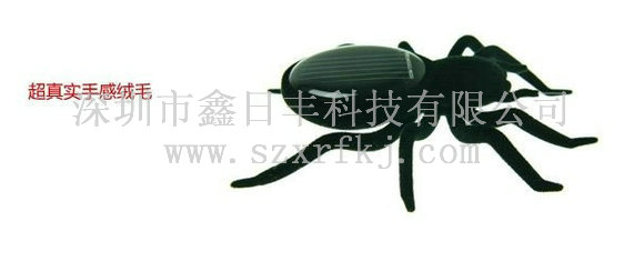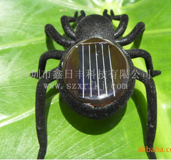 该产品采用太阳能供电技术,不用蓄电池,在太阳光下直接驱动微型振动电机,达到产品特定的振动效果,在太阳光直射下太阳能蜘蛛可以全身抖动,好似要出击扑食一般,产品即新颖独特,环保节能,又是学校启蒙学生太阳能概念的良好教学用品..