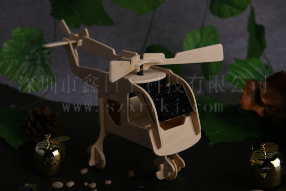 太阳能拼装木飞机是我公司推出的一款儿童益智玩具,机身为优质木材精细制作而成,其顶部加装由太阳能多晶硅滴胶封装电池片和电动马达组成的螺旋桨,在阳光的照耀下,太阳能电池片将太阳能转化为电能带动螺旋桨开始旋转。根据光线的强弱,螺旋桨的转速可逐渐变化。太阳能玩具小飞机整体造型简洁流畅,适合摆放在汽车、窗台等阳光充足的场所,为您的生活空间更添一分阳光般的温暖与情调。太阳能木制飞机玩具,形象生动.既可以作为学生教学,寓教于乐;又可作为工艺品,放于窗台,阳台;如摆在酒柜射灯下,更是栩栩如生.该产品环保,节能,又是学校启蒙学生太阳能概念的良好教材