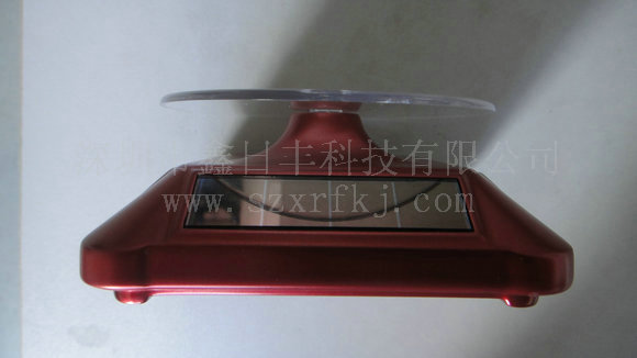 该款太阳能旋转展示台,是我公司又新开发的一款新型展示台,该款展示台特点流线型,外观漂亮,窗口立体感强,太阳能片比传统的角度小,更容易接收光的照射,500LUX光强以上可以负重300克以上展示产品,轴接口改为内嵌式,降低了运输过程中轴时常被压坏的状况,流线的展示台外形给你展示的产品增添更加夺目光彩!适用于珠宝,手机,数码产品等的展示.