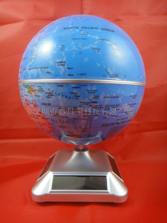这款地球仪是不需要给它安装电池的,因为它的底座的四边有四块太阳能电池片,这四块太阳能电池片通过接收光线从而带动太阳能地球仪转动。这款太阳能地球仪底座采用的是流线型圆弧设计,外观会显得更美观,上面的机芯接口这里采用的也是保护性的设计,使得这款产品的底座使用寿命更长,实用性也更强,不易损坏。底部采用的是卡扣设计,传统的底座采用的是打镙钉的方式固定的,有时会因为受力不均匀而影响机芯的稳定,所以这种卡扣式的设计使得这款太阳能地球仪的底座非常稳定。