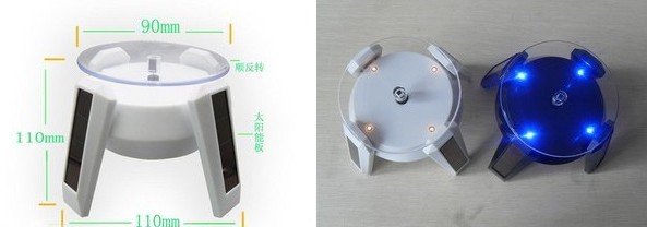 太阳能旋转展示台在顺时针及逆时针的情况下都能够旋转。产品在自然光线下能够正常地工作