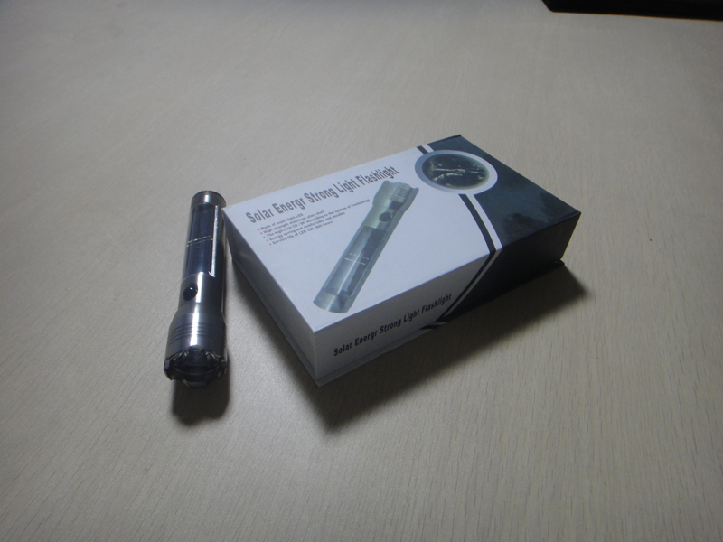 Spec Packing Color£ºSiliver/black Product Size£ºφ35*167mm Product Weight: 126g Material: Aluminium Alloy package size£º220*136*49mm Brightness£º 150000mcd package weigth£º344g work time:above 4H CTN Size£º50×45×29cm OEM: Available QTY/CTN£º40PCS Export: Yes Net Weigth£º13.76KG Logo: no logo Gross Weight£º14.50KG Description The solar flashlight can be charged by solar or USB cable,also availe in car recharged. It take 16 hours for full charged by solar while it is 2 hours by USB cable charged. This product is hight bright and long life.