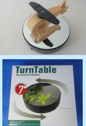 The product is widely used for showing comodity in the marketplace. The top surface of the product is stainless steel mirror panel. and the tuner on the side and adjust the rotating speed.There is a battery slot on the bottom, and the switch can turn on or turn off the display.