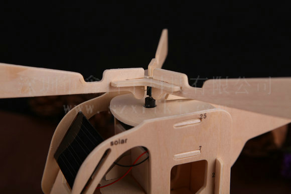 身各个部件均由高品质原木精心打磨而成。10分钟内可以轻松拼装完毕,动力来自机舱前面的超大太阳能板,绿色环保,只要把它放在阳光下或置于大功率的白炽灯下,螺旋桨就会马上开始旋转,彷佛“即将”起飞一般,注意,已经有N多客户问为啥飞不起来……晕,如果能飞到空中,就去做私人直升机销售了。毕竟,此乃创意产品。当阳光或灯光强度发生变化时,螺旋桨的转速也会有所不同。