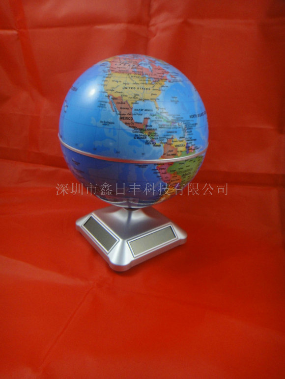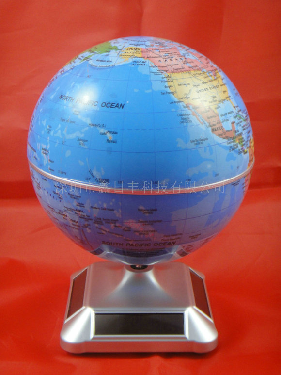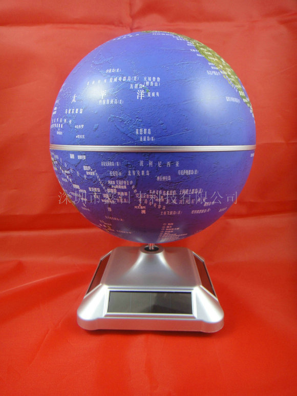 这款地球仪是不需要给它安装电池的,因为它的底座的四边有四块太阳能电池片,这四块太阳能电池片通过接收光线从而带动太阳能地球仪转动。这款太阳能地球仪底座采用的是流线型圆弧设计,外观会显得更美观,上面的机芯接口这里采用的也是保护性的设计,使得这款产品的底座使用寿命更长,实用性也更强,不易损坏。底部采用的是卡扣设计,传统的底座采用的是打镙钉的方式固定的,有时会因为受力不均匀而影响机芯的稳定,所以这种卡扣式的设计使得这款太阳能地球仪的底座非常稳定。
