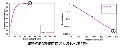 1.在维持过滤效率的同时減少压力损失(或提高过滤效率的同時保持压力损失)