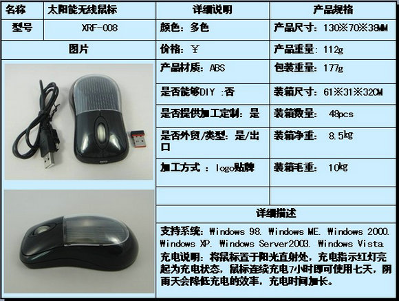 充电说明:将鼠标置于阳光直射处,充电指示红灯亮起为充电状态,鼠标连续充电7小时即可使用七天,阴雨天会降低充电的效率,充电时间加长。